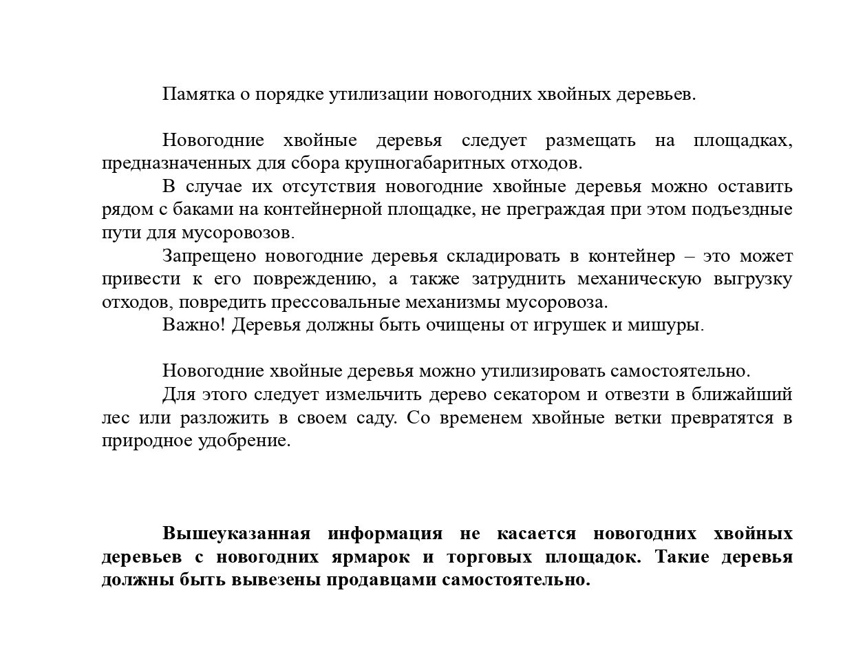 Памятка о порядке утилизации новогодних хвойных деревьев