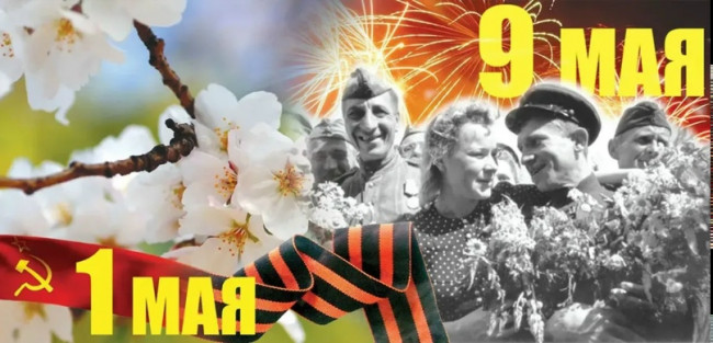 С наступающими праздниками 1 Мая и Днем Великой Победы 9 Мая!